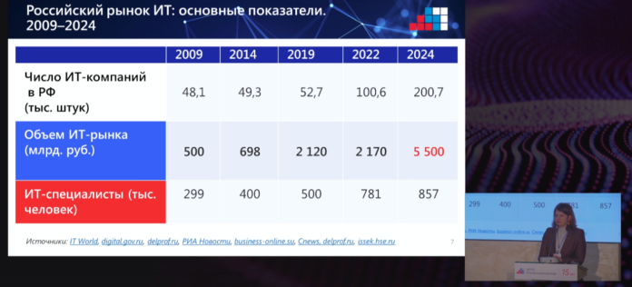 Отечественный ИТ-рынок показал рост на 60% с итоговой суммой в 5,5 трлн рублей год к году. Количество ИТ-компаний удвоилось в прошлом году до 200 тысяч.