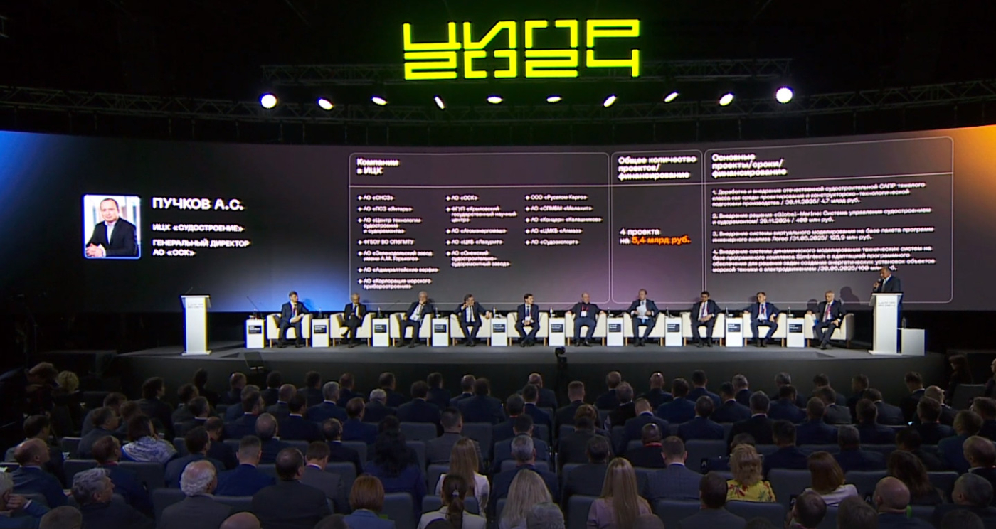Генеральный директор ОСК Андрей Пучков выступил на пленарной сессии конференции «Цифровая индустрия промышленной России» и рассказал о результатах работы индустриального центра компетенций (ИЦК) «Судостроение» по разработке тяжелого судостроительного САПР.